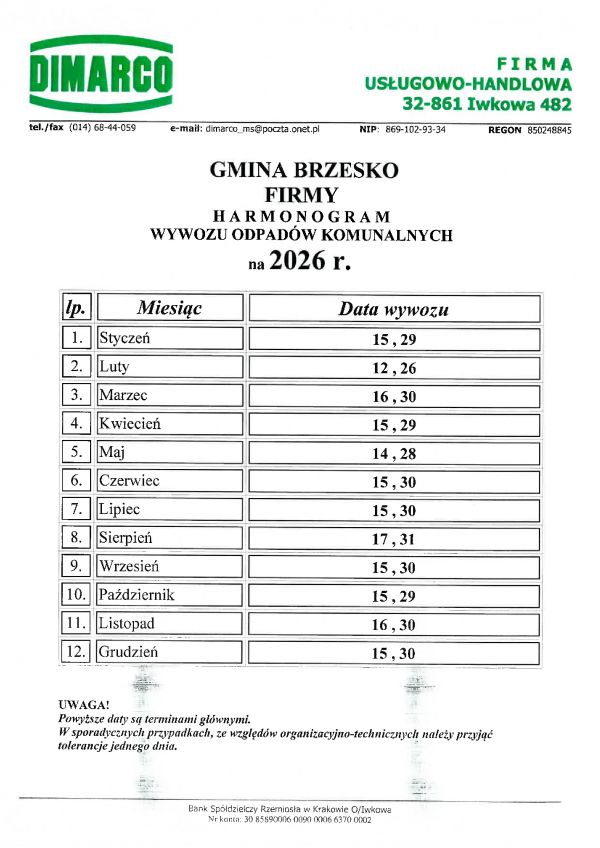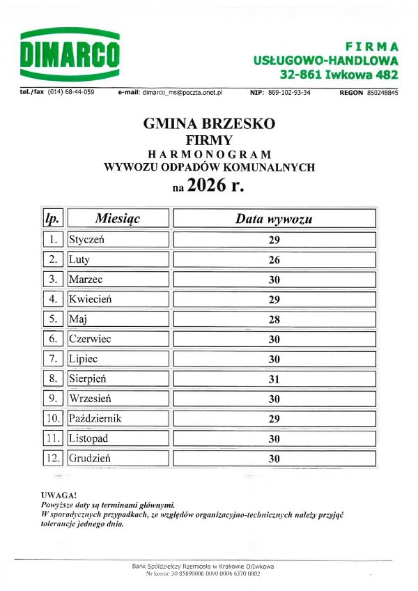 Harmonogram wywozu Mieszkańcy