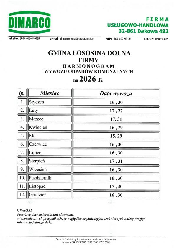 Harmonogram wywozu Mieszkańcy